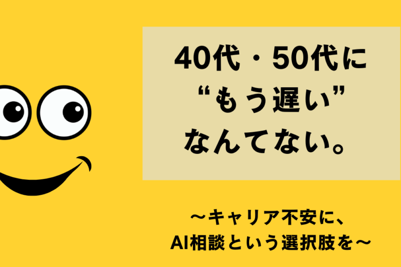 40代・50代のキャリアチェンジを成功させるために必要な情報を発信!転職市場の動向、副業の始め方、スキルアップの方法などを提供し、キャリアの選択肢を広げます。
