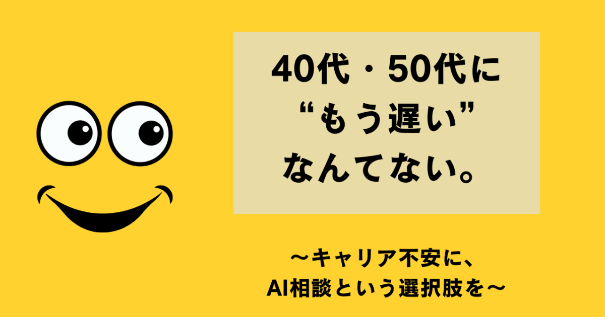 「もう遅いかも」と思ったときに。40代・50代のキャリア不安に、AI相談という選択肢を。